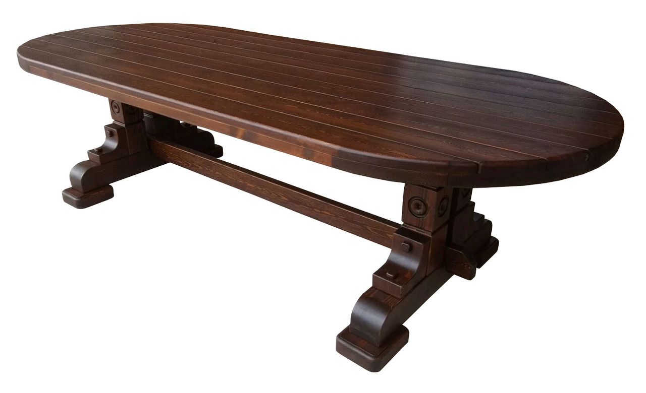 Стіл овальний із масиву сосни. Дерево оброблене, поверхня гладка на дотик, легко миється. Можна мити водою.